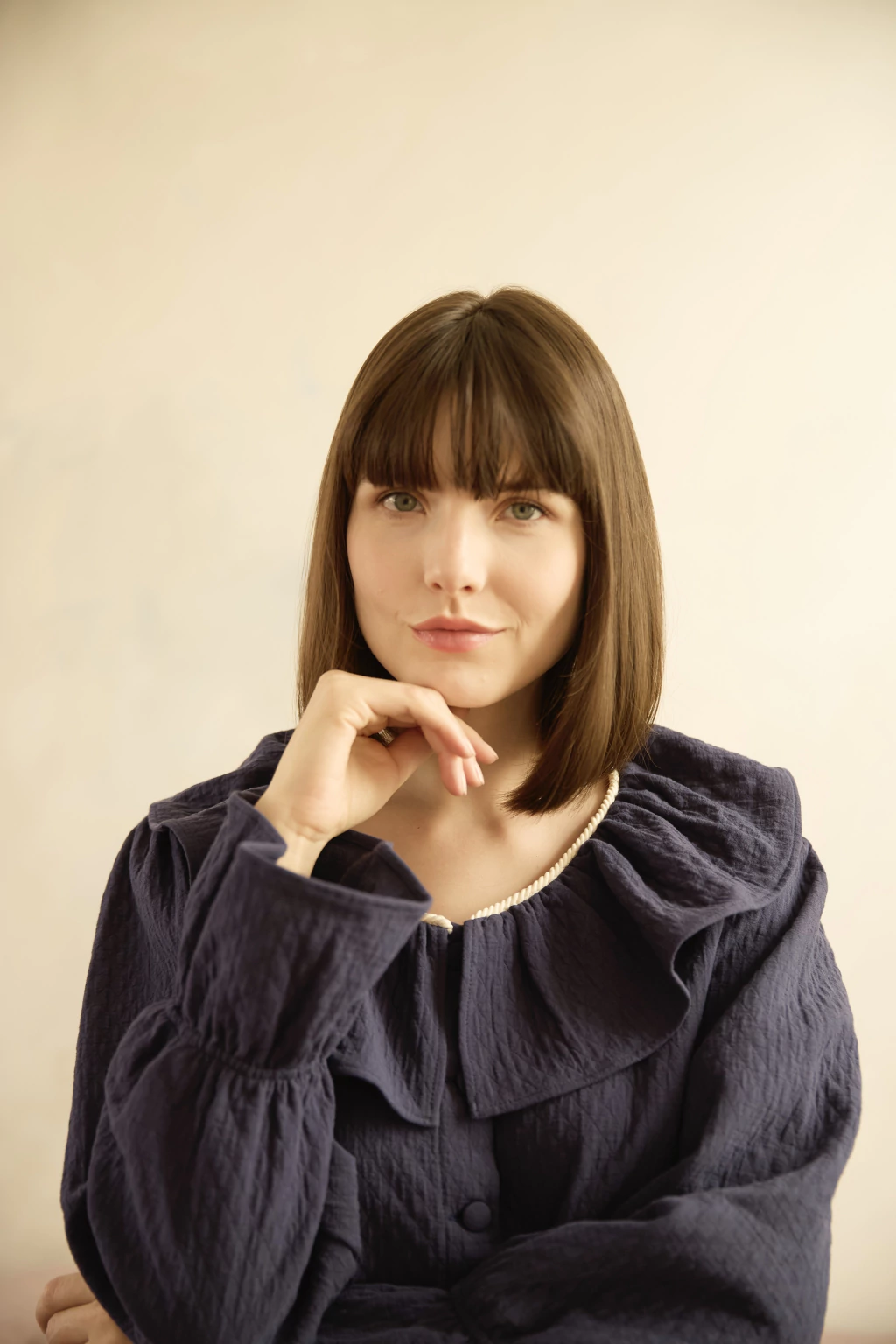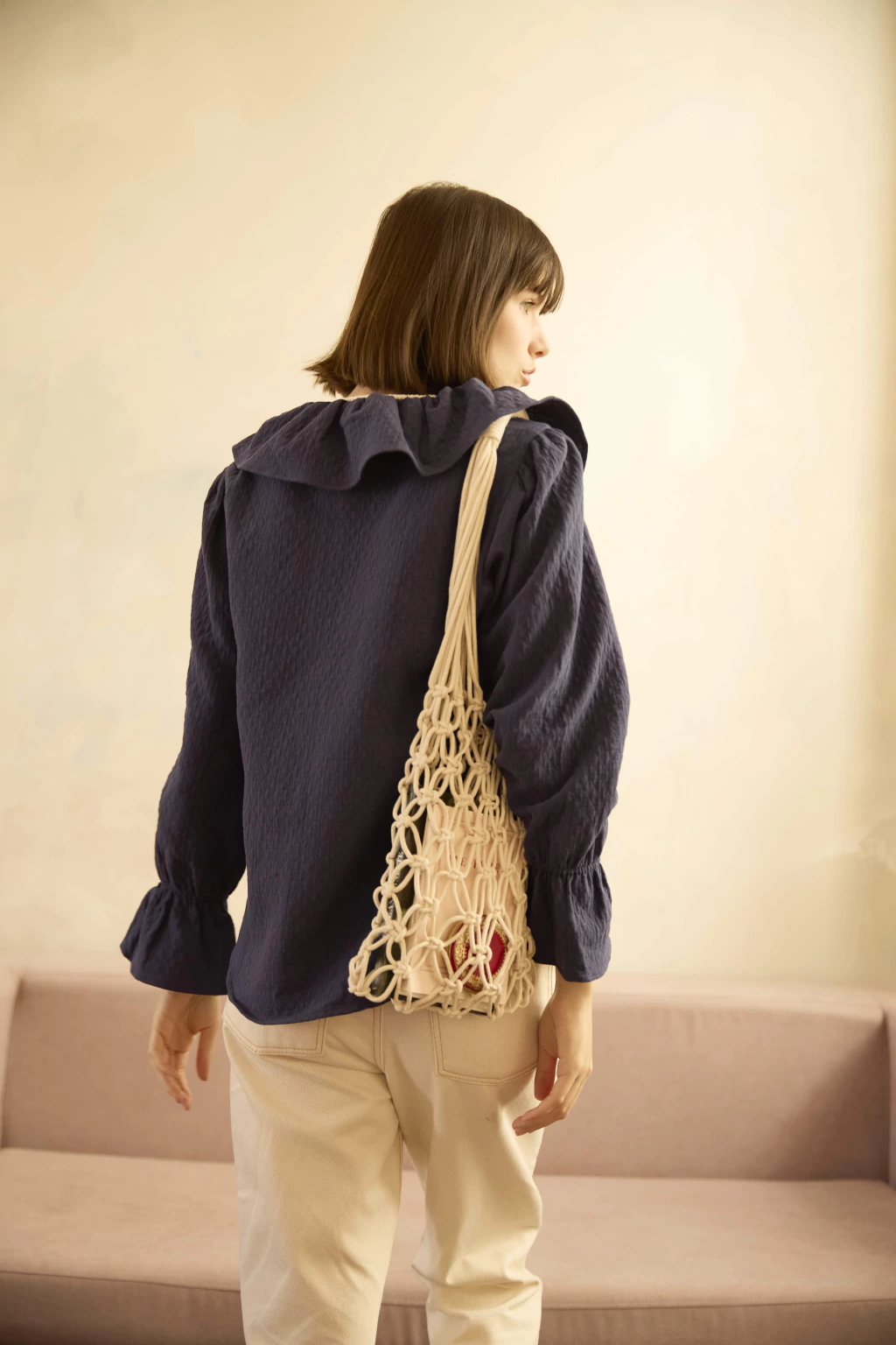 A Blusa Madeleine é uma peça que une delicadeza e estrutura em perfeita harmonia. Com a mesma modelagem consagrada da Blusa Isabelle — com mangas poetas suaves, decote redondo e caimento delicado — ela ganha nova personalidade em algodão matelassê azul marinho, que adiciona profundidade visual e toque artesanal à composição.