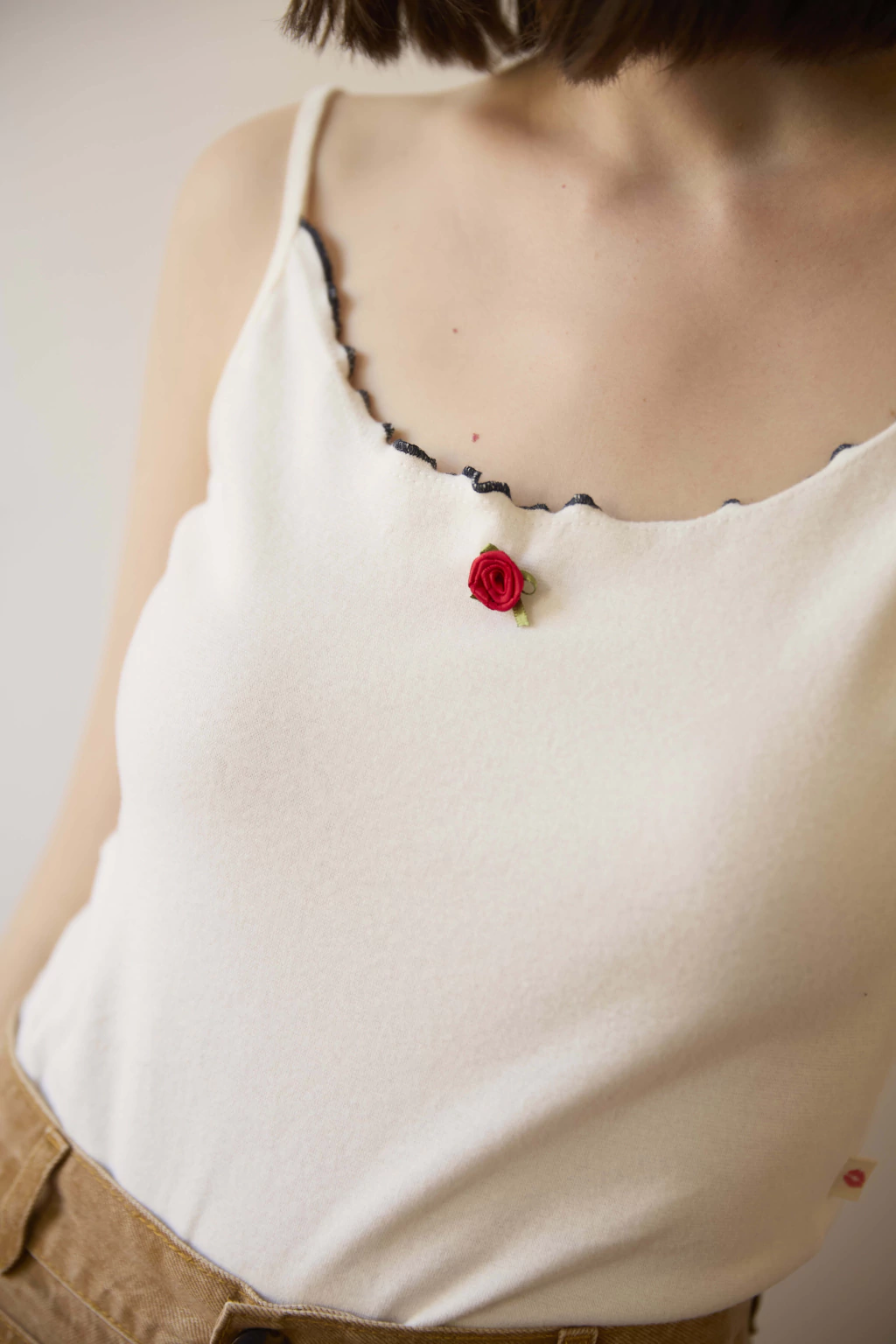 A Regata Aimée traz a essência suave e luminosa da Collection Héritage. Confeccionada em algodão off white de toque leve e confortável, ela recebe um detalhe encantador: uma mini flor aplicada na parte frontal, que traduz o romantismo discreto e o cuidado artesanal característicos da French Stripes.