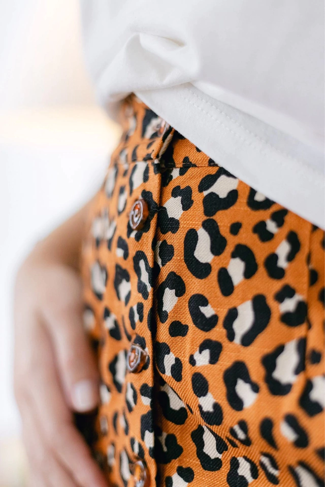 A saia midi Leopard é puro charme com um toque selvagem e sofisticado! Com estampa clássica de oncinha em tons quentes, ela traz um visual marcante e atemporal — perfeita para quem ama ousar com elegância. Feita em viscose sarjada encorpada, proporciona caimento impecável e conforto o dia todo. Uma peça versátil e irresistível que vai do escritório ao happy hour com facilidade. Atenção: esta é uma édition limitée, feita com tecido garimpado e sem reposição. Corre que vai voar!
